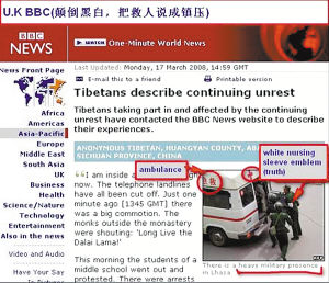 在“三•一四”事件中受到暴力沖擊的《西藏日?qǐng)?bào)》和新華社西藏分社的同行們都對(duì)這種偏聽偏信、先入為主、任意剪裁的“客觀報(bào)道”表示憤慨。他們說,“如果這些媒體受到同樣沖擊,他們還會(huì)這樣‘取舍’么?”兩位因拍攝、報(bào)道“事件”真相而遭受追殺和恐嚇的當(dāng)?shù)孛襟w朋友也有這樣的“幽默”:如果誰對(duì)中國(guó)依法處置這次暴力犯罪分子抱有疑義,強(qiáng)烈歡迎他們引進(jìn)這些人到他們那里好好表現(xiàn)。
