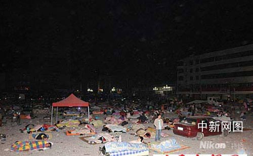 為防止余震再次造成傷亡,隴南市民十二日晚上全部在大街上度過了驚魂的一夜。 侯志雄 張晟福 攝