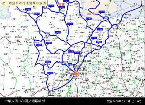 戴東昌介紹,到目前為止,通往重災(zāi)區(qū)的三條生命線,作為公路運(yùn)輸?shù)闹魍ǖ酪呀?jīng)打通。第一條搶通的是通往汶川的大通道,它是在5月15號(hào)晚上9點(diǎn)半打通。之后,相繼在5月17號(hào)打通了從甘肅往南到茂縣的北線,以及從成都經(jīng)過都江堰到映秀的南線。應(yīng)該說南線這條線最艱難,災(zāi)情最嚴(yán)重,在搶通過程中遇到困難也是最大的。這三條生命線在維護(hù)人員的全力維護(hù)下能夠保持暢通。