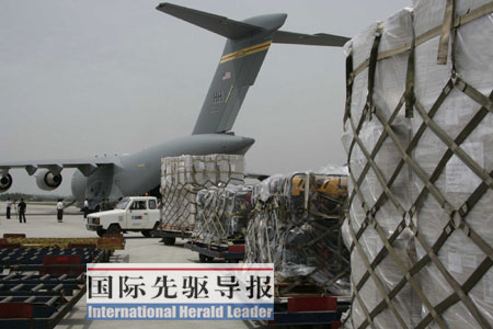 美軍兩架C-17“環(huán)球霸王”軍用飛機運載救援物資,分別從美國夏威夷和阿拉斯加空軍基地起飛,于18日抵達(dá)中國成都雙流國際機場。本報記者 王建民/攝