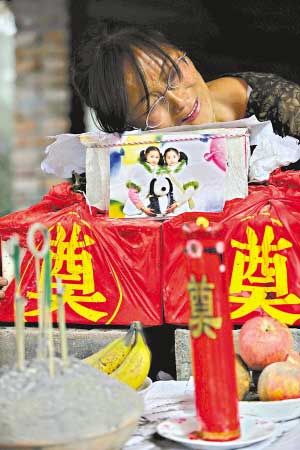 昨天,在自己倒塌的房屋前,趙德琴給兩個(gè)孩子設(shè)了一個(gè)小靈堂,她抱著兩個(gè)孩子的遺像,溫柔地說著:“孩子,我們分別10天了!彼娙司驼f:“琦琦在母親節(jié)那天把我?guī)У揭粋(gè)餐館里,用她的零花錢給我準(zhǔn)備了一頓飯,還突然地從身后拿出一枝花,她好幾天前就說過要給我一個(gè)驚喜的。我還沒告訴她‘琦琦,媽媽那次真的很驚喜!