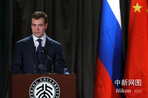 中新網(wǎng)5月24日電 俄羅斯總統(tǒng)梅德韋杰夫今天下午在北京大學(xué)發(fā)表演講時(shí)說,俄中關(guān)系最近幾年達(dá)到了前所未有的高水平,發(fā)展迅速、內(nèi)容廣泛,很重要的是兩國(guó)之間給予相互信任,雙方一致認(rèn)為伙伴關(guān)系既可靠,又有前途。