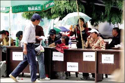 除政府部門(mén)外,法院和檢察院也在廣場(chǎng)上擺出攤子接待市民?h法院一位女副庭長(zhǎng)說(shuō),受地震影響,法院無(wú)法開(kāi)庭審理各種案件,原本在地震后的一段時(shí)間里應(yīng)該開(kāi)庭審理的案件當(dāng)事人可能會(huì)對(duì)案件無(wú)所適從。法院接待處就是為了向市民做法律方面的解釋工作。她透露,昨天縣法院要求民事、刑事及立案庭在近兩天內(nèi)開(kāi)始搭建臨時(shí)法庭,并盡快恢復(fù)開(kāi)庭審理案件。她說(shuō),按法律規(guī)定,遇地震等重大災(zāi)害,法院可以中止審理各種案件,但截至目前,該院沒(méi)有一起案件被中止。法院已開(kāi)始清理所有積案,遇有當(dāng)事人在外地?zé)o法返回茂縣,或因重建家園而無(wú)法參加庭審的情況,法院將與其取得聯(lián)系,辦理延期開(kāi)庭手續(xù)。