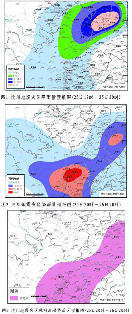 25日下午,四川、甘肅南部、陜西南部等地震災區(qū)將出現(xiàn)小雨。四川理縣、汶川、茂縣、都江堰、綿竹的降雨量為1-5毫米;四川北川、青川以及甘肅徽縣、文縣、陜西略陽的降雨量為5-10毫米,并伴有雷電天氣,請注意防范。