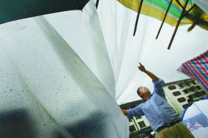 同樣是月圓村災(zāi)民的肖蘭杰就更頭疼,因?yàn)榧依锏膸づ駨氐姿,雖然經(jīng)濟(jì)條件不錯的他買的是市面上最好的帳篷布。昨日12時,在救災(zāi)官兵的幫助下重新搭篷的肖蘭杰對記者感慨,“要是繼續(xù)這么下雨,帳篷還得塌”。