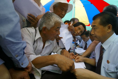 來(lái)上訪的劉女士說(shuō),第一次接訪時(shí)她也知道,但根本沒(méi)抱希望,但聽說(shuō)上次許多人反映的問(wèn)題確實(shí)得到了解決,今天就趕過(guò)來(lái)了。省高院工作人員說(shuō),上午10時(shí)剛過(guò),就已經(jīng)發(fā)出3000張排號(hào)單。上午,省高院院長(zhǎng)張立勇接待群眾近百人。因天氣炎熱,接訪現(xiàn)場(chǎng)還專門準(zhǔn)備了綠豆湯和礦泉水。
