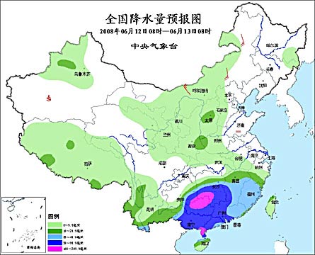 中新網(wǎng)6月12日電 據(jù)問天網(wǎng)消息,中央氣象臺6月12日06時發(fā)布未來三天天氣預(yù)報(bào):預(yù)計(jì),今明兩天,地震災(zāi)區(qū)無明顯降雨,以多云天氣為主,有時有小陣雨,氣溫較高,濕度較大,其中,四川成都、綿陽、德陽、廣元以及甘肅文縣、陜西略陽、寧強(qiáng)等地日最高氣溫可達(dá)30~32℃,帳篷內(nèi)溫度36~40℃,四川汶川、茂縣、理縣日最高氣溫可達(dá)28~30℃,帳篷內(nèi)溫度32~35℃,請注意采取防暑降溫措施。14~15日,地震災(zāi)區(qū)將有一次中雨、局地大雨的天氣過程,降雨量一般為10~25毫米,局部地區(qū)雨量可達(dá)30~40毫米。