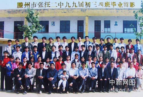 圖為張鵬的中學畢業(yè)合影照(最后排右起第五位是張鵬)。