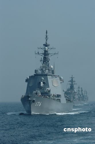 2006年10月,日本自衛(wèi)隊海上閱兵儀式在東京附近的相模灣海面舉行。據悉,此次閱兵云集了日本全國五大艦艇基地的各類主力戰(zhàn)艦。共有四十八艘艦船,五十架飛機,八千多名自衛(wèi)隊官兵參加了此次大規(guī)模的海上武裝亮相。圖為參加閱兵的導彈護衛(wèi)艦編隊。 中新社發(fā) 王健 攝
