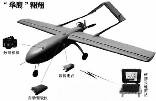 這款名為“華鷹”的無人機(jī)數(shù)次出現(xiàn)在青川、北川,對(duì)抗震救災(zāi)發(fā)揮了積極的作用。據(jù)四川省測(cè)繪局的專家介紹,“華鷹”是四川省測(cè)繪局專程向國家測(cè)繪局申請(qǐng)派來支援災(zāi)區(qū)的。“華鷹”無人機(jī)航攝系統(tǒng)通過了國家測(cè)繪局鑒定,飛機(jī)系統(tǒng)采用GPS導(dǎo)航自主飛行,裝備專業(yè)數(shù)碼相機(jī),可在半徑15千米的范圍內(nèi)穩(wěn)定可靠飛行3小時(shí),自動(dòng)拍攝地面高分辨率航空影像,生成高清晰地面影像。