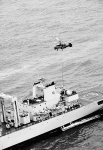 時(shí)近中午,反潛空中突擊群打擊“潛艇”戰(zhàn)斗如期打響。海域內(nèi)波濤滾滾,反潛直升機(jī)穿行在藍(lán)天碧海之間。