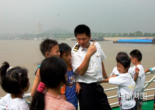 武漢市部分中小學20余名師生登上剛剛投入使用的內河最先進巡航救助船——長江海事2號,饒有興致地聽著武漢海事局現(xiàn)場執(zhí)法人員講解海洋知識和長江航運發(fā)展史。武漢海事局青年志愿者在漢口江灘分別向過往市民分發(fā)“航海日”宣傳資料100余份。