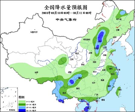 11日08時至12日08時,新疆西北部、西藏中東部、青海東部、甘肅中南部、寧夏西南部、陜西南部、內(nèi)蒙古中部偏東和東部偏南地區(qū)、東北大部、華北東部、黃淮中東部、江淮大部、江漢、江南、華南、西南以及臺灣等地有小到中雨或雷陣雨,其中,河北北部、北京西北部、遼寧南部、山東半島、廣東西南部、廣西南部、海南大部、云南西部、四川川西高原北部和盆地東部等地有大雨,部分地區(qū)有暴雨,上述部分地區(qū)并將伴有短時雷雨大風或冰雹等強對流天氣。東北東部地區(qū)有4~5級偏南風,南海中北部、北部灣有5~6級偏東或偏西風。