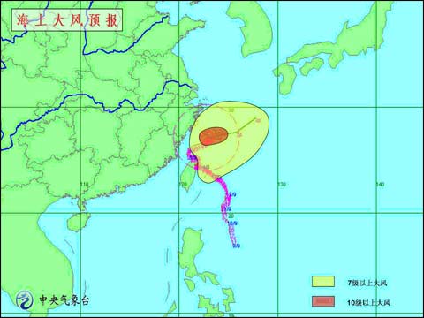 預(yù)計,今天白天到夜間,受強熱帶風暴“森拉克”影響,東海大部海域、臺灣以東洋面將有7-8級大風,“森拉克”中心經(jīng)過的附近海域的風力可達9-10級。