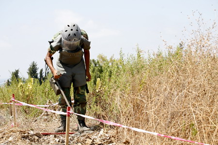 中國赴黎維和工兵營官兵告訴記者,該雷區(qū)位于黎以邊界的藍線雷場,自上世紀70年代以來,黎以雙方把近50萬顆各型地雷埋藏于此。由于雷場植被茂密、荊棘叢生,再加上長時間的雨水沖刷,很多地雷都發(fā)生了移位,官兵手中的雷場信息圖,早已成了廢紙,這給掃雷工作帶來了很大的危險和困難。