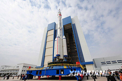 中新網(wǎng)9月20日電 已經(jīng)完成垂直總裝的“神舟”七號船箭組合體,今天下午順利進(jìn)行了從火箭總裝測試廠房向發(fā)射塔架的垂直轉(zhuǎn)運(yùn),成功到位,等待發(fā)射。