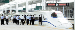 從9月24日起,每日將有4對(duì)京津城際高鐵往返于北京—塘沽兩地,全程用時(shí)56分鐘左右,票價(jià)分為三檔,特等座為118元,一等座為84元,二等座為70元。最早一班車10:45從北京南開往塘沽,最晚一班車19:59由塘沽開往北京南站。這四對(duì)高鐵列車將在天津站停靠,由天津站開往塘沽的票價(jià)分別為特等座19元,一等座15元,二等座12元。昨天,一列京津城際高速列車15:55由北京南站開往塘沽站,16:49準(zhǔn)點(diǎn)到達(dá)塘沽站,進(jìn)行了運(yùn)營前的全面試跑,以確保24日順利投入運(yùn)營。