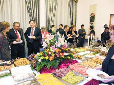 孫玉璽大使表示,中華人民共和國成立59周年特別是改革開放30年來,國家建設(shè)取得巨大成就。2008年對中國人民來說是極不平凡的一年,中國政府成功地舉辦了一屆高水準的夏季奧運會和殘奧會,加深了中國與世界各國的相互了解,增進了友誼與信任,促進了互利合作。