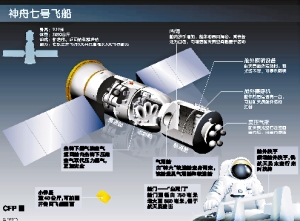 飛船總裝主管設(shè)計師劉曉震告訴記者,神舟七號飛船的研制重點就是要確保航天員順利進行出艙及釋放小衛(wèi)星等其他活動。為此,設(shè)計在飛船內(nèi)部的空間保障上做足了文章。由于此次要完成出艙活動任務,而艙外航天服的體積較大,兩名航天員要進行穿脫服裝的動作,此外還要攜帶3人5天的生活物品,這勢必要占據(jù)艙內(nèi)的有限空間,為此,研制人員在設(shè)計飛船時盡量安裝設(shè)備的儀器板,把其裝載在類似貨架的格框上,提高空間使用率,以便騰出更多的空間供航天員活動。