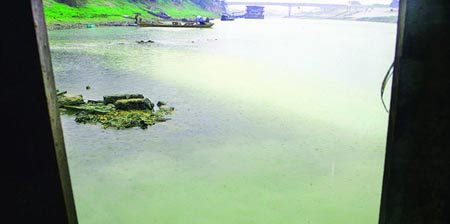 昨日上午11時(shí),記者可以清晰地看到河水的顏色分成好幾個(gè)層次,約五十米寬的河面上,最靠近岸邊的是黑色,再過(guò)去一點(diǎn)的是鮮明的乳白色,越往河心顏色越濃,整個(gè)河面呈現(xiàn)出白得發(fā)青的顏色,排水口還在不停地往河里排放乳白色、漂著白色泡沫的污水,早上的大雨也絲毫沒(méi)能沖散掉乳白色的河水。