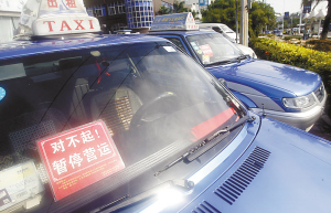 因不滿承包金過高、黑車橫行、出租車承包一年一簽的新規(guī)等問題,三亞部分出租車今天(10日)停止營運(見上圖,記者程范淦攝),給市民和游客的出行帶來了諸多不便。