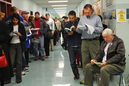 等到孩子們真正長(zhǎng)大可以投票的時(shí)候,他們?cè)跓崆楦邼q的同時(shí)又不乏理性。在呂芳的想像中,投票站應(yīng)該是兩方對(duì)壘,支持者搖旗吶喊才對(duì)。結(jié)果卻完全出乎他的預(yù)料。大選當(dāng)天,呂芳所在小組參觀的第一個(gè)投票點(diǎn)在弗吉尼亞Falls Church縣的一個(gè)社區(qū)活動(dòng)中心。他們到那里時(shí)剛過6點(diǎn),投票點(diǎn)外已經(jīng)排起了長(zhǎng)龍,蜿蜒足有一二百米。人群中,有人帶著蹣跚學(xué)步的孩子,有人坐著輪椅,有人自己帶著椅子……“但是,整個(gè)人群靜悄悄的,沒有一點(diǎn)激動(dòng)人心的表現(xiàn)!
