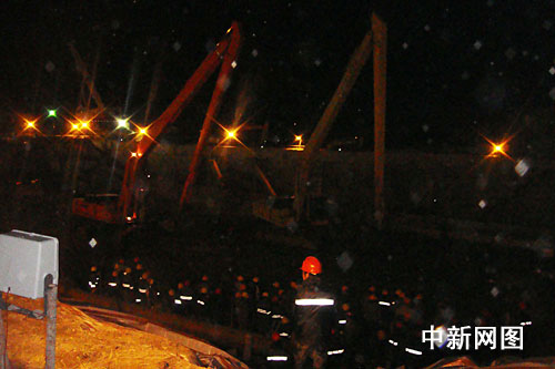 圖為19日凌晨兩點(diǎn)三十分左右,救援人員正在按搶險(xiǎn)方案進(jìn)行搜救