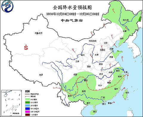 2008年12月4日8時(shí)—12月5日8時(shí)全國降水量預(yù)報(bào)圖
