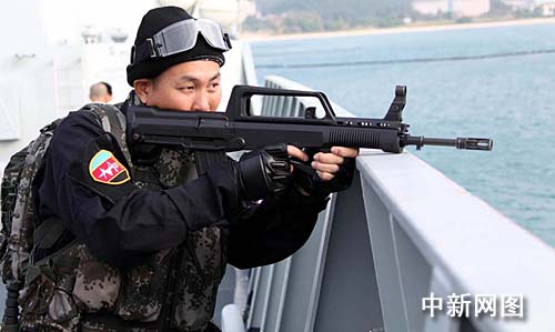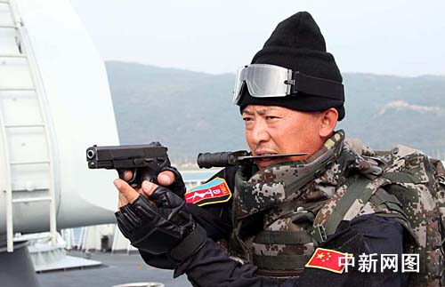 中新網(wǎng)“?凇迸12月28日電(記者 孫自法)特戰(zhàn)隊員出征前在“?凇碧枌楎(qū)逐艦上進行輕武器演練。