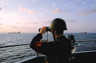 當?shù)貢r間1月12日6時(北京時間11時),中國海軍護航編隊為包括臺灣商船“宇善”號在內(nèi)的4艘船舶組織實施護航。這是中國海軍護航編隊抵達亞丁灣以來的第二次護航行動。錢曉虎攝(新華社發(fā))