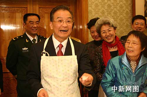 當(dāng)?shù)貢r(shí)間二月一日中午,正在英國(guó)訪問(wèn)的中國(guó)總理溫家寶來(lái)到中國(guó)駐英大使館看望外交人員和華僑華人。他和大家一起包餃子,還風(fēng)趣地說(shuō)自己包餃子的手藝很不錯(cuò)。中新社記者 張朔攝