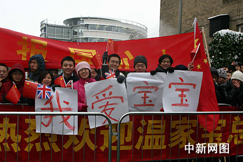 中新網(wǎng)倫敦2月2日電(記者 張朔)當(dāng)?shù)貢r間二月二日下午,即將結(jié)束訪英和訪歐行程的中國總理溫家寶踏雪到訪劍橋大學(xué),受到學(xué)子們的熱烈歡迎。有的學(xué)生甚至還打出了中文標(biāo)語:“我愛寶寶!