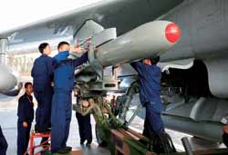 信號(hào)彈劃過,剛剛還顯得靜謐的機(jī)場(chǎng)立刻忙碌起來。借助微弱的燈光,記者看到空勤人員一身戎裝迅速就位,地勤人員有條不紊地檢查著“飛豹”戰(zhàn)機(jī);機(jī)場(chǎng)車燈閃爍,各種保障車輛忙而不亂,為戰(zhàn)鷹加油、充電、充氧、掛彈;3輛燈車朝著跑道頂頭駛?cè)ァ?table border=0 cellspacing=0 cellpadding=0 align=left>