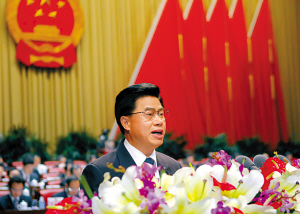 省長黃華華向大會作《政府工作報告》。黃華華說,2008年,廣東完成生產(chǎn)總值35696億元,比上年增長10.1%。