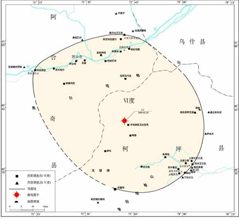 2009年2月20日18時02分,新疆維吾爾自治區(qū)阿克蘇地區(qū)柯坪縣(北緯40.42度,東經(jīng)78.42度) 發(fā)生M5.2級地震。震源深度6千米。宏觀震中位于柯坪縣木伊那克玉臺克希牧民點附近(北緯40°43′、東經(jīng)78°42′)。極震區(qū)烈度為Ⅵ度。該烈度區(qū)面積3600平方千米。