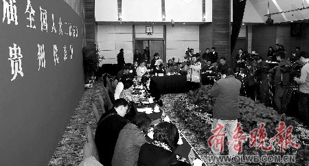 上午11時左右,云南團答記者問開始。本報記者和周圍記者交談后得知,不少云南省外媒體都想提問有關(guān)“仇和新政”和“躲貓貓”的問題。