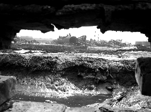 3月17日,民權(quán)縣磷肥廠“遺址”。廠子已被爆破,圍墻顯得殘破。廠內(nèi),巨大鋼鐵構(gòu)件橫七豎八,倒臥在地。廠外,大沙河呈暗褐色,飄出陣陣惡臭。