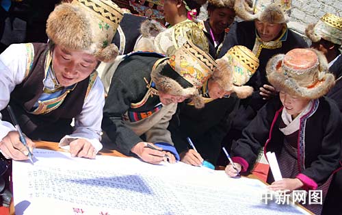 西藏民主改革第一村、乃東縣克松村居委會居民代表(簽名):