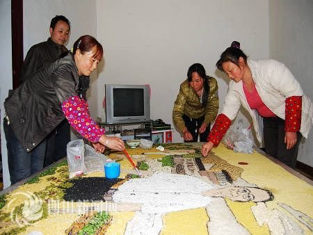 村民制作雜糧畫(圖片來源:四川新聞網(wǎng))