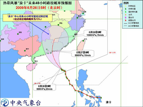 受“浪卡”和西南季風(fēng)的共同影響,今天白天到夜間,南海北部海面、廣東沿海將有7-8級大風(fēng),風(fēng)暴中心經(jīng)過的部分海域或地區(qū)的陣風(fēng)可達9-10級,南海中部將有6-7級大風(fēng);廣東東部、福建南部將有大到暴雨,廣東沿海的部分地區(qū)有大暴雨。