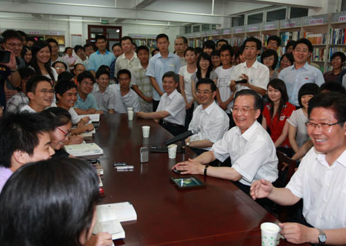 溫家寶:我非常高興來到湖南大學(xué),看望廣大師生,我向你們表示問候。湖南大學(xué)是千年學(xué)府、百年名校,為國家培養(yǎng)了許多棟梁之才,這是你們的光榮!你們身上承擔(dān)著很重的責(zé)任。我想引用一位詩人的名言,他叫布朗寧,他曾經(jīng)說:“我心寄托在什么地方,讓我腦也就寄托在那里。”我們國家的未來,寄托在青年學(xué)生的身上,寄托在年輕一代!因此,我來到年輕人中間,腦子里的寄托也就是希望跟你們說幾句心里話。我希望你們懂得奮斗,準(zhǔn)備迎接困難。青年學(xué)生是富于理想的,這是你們的優(yōu)勢(shì),但是人生的道路是不平坦的,你們要以徹底的覺悟、不屈不撓的意志和艱苦的努力,去面對(duì)和迎接這些困難。我相信,你們都有遠(yuǎn)大的理想,但是還要腳踏實(shí)地。你們經(jīng)過幾年的學(xué)習(xí),即將走向社會(huì),要記住六個(gè)字,就是“此時(shí)、此地、此身”。“此時(shí)”,就是現(xiàn)在應(yīng)該做的事情,就立即做起來,不要拖延到以后;“此地”,就是要在你所處的崗位做起,為國家和人民作出貢獻(xiàn),不要等到別的地方;“此身”,就是自己應(yīng)該而且能夠做的事情,就要勇于承擔(dān),不要推給別人。
