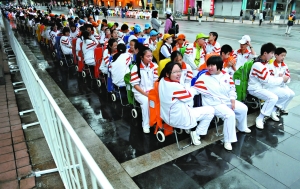 來自北京工業(yè)大學(xué)的小丁說,他們所在的是群眾游行方陣,已連續(xù)訓(xùn)練了15天,每天訓(xùn)練近6個(gè)小時(shí)。據(jù)他介紹,正式演練要等到7日凌晨1點(diǎn)開始,到達(dá)演練區(qū)域后,“雖需等待幾個(gè)小時(shí),但不感覺累,能參與國慶慶典,感覺十分榮幸!