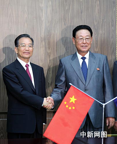中新網(wǎng)平壤10月4日電(記者 周兆軍)中共中央政治局常委、國(guó)務(wù)院總理溫家寶四日在平壤萬壽臺(tái)議事堂同朝鮮總理金英日舉行會(huì)談。