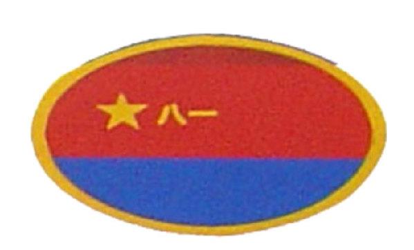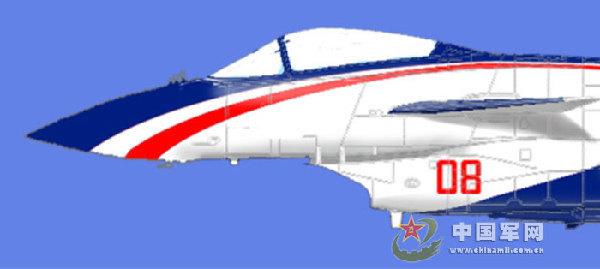 飛機(jī)編隊(duì)標(biāo)記為橢圓形狀,由上、下兩個(gè)部分組成,采用紅、黃、藍(lán)3種顏色,上部噴涂黃色五角星和八一字樣,底色為紅色;下部噴涂為藍(lán)色。(見圖15)。