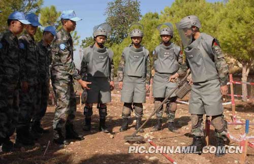 我第六批赴黎巴嫩維和工兵營以成都軍區(qū)某集團軍工兵團為主組成。該團曾參加過中越邊境大掃雷,3次受派進行人道主義援外排雷,已成功擔負3批赴黎維和掃雷任務,掃雷排爆經驗豐富,先后發(fā)現和排除未爆彈及地雷五千余枚,并創(chuàng)造了“零傷亡”的出色成績。