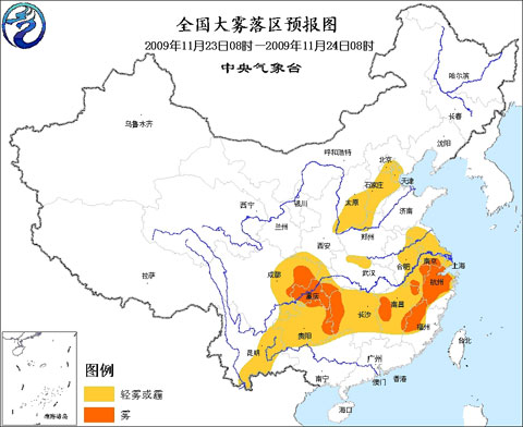 中國(guó)氣象局與交通運(yùn)輸部2009年11月22日聯(lián)合發(fā)布的全國(guó)主要公路氣象預(yù)報(bào)中受霧影響的主要路段有:
