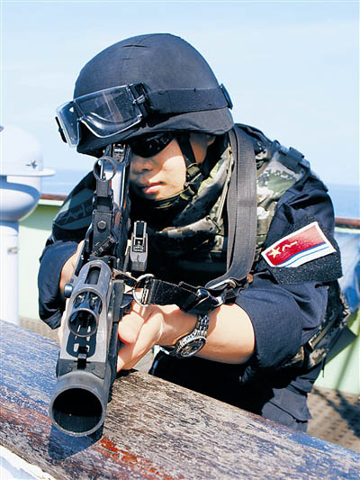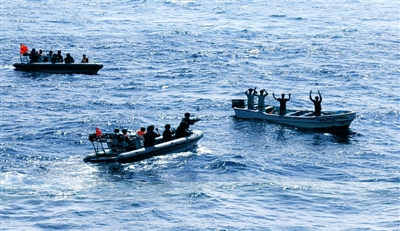 12時(shí)28分,巢湖艦在艦載直升機(jī)的引導(dǎo)下鎖定了正在轉(zhuǎn)向“鴻達(dá)號(hào)”商船的疑似海盜快艇。在發(fā)射3枚信號(hào)彈予以警告后,疑似海盜快艇被迫停車,隨后趕到的馬鞍山艦迅速派出2艘小艇靠近,特戰(zhàn)隊(duì)員將其驅(qū)離。