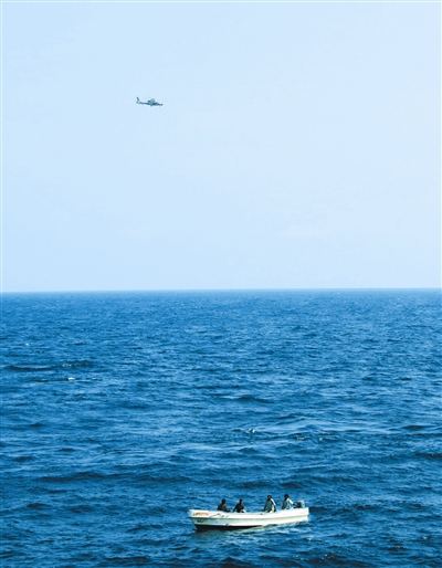 12時(shí)09分,中國(guó)海軍護(hù)航編隊(duì)接到求救信號(hào)后,迅速進(jìn)入一級(jí)反海盜部署。馬鞍山艦、溫州艦、巢湖艦分別從不同方位向事發(fā)海域高速機(jī)動(dòng),巢湖艦艦載直升機(jī)搭載特戰(zhàn)隊(duì)員緊急升空進(jìn)行搜索查證。