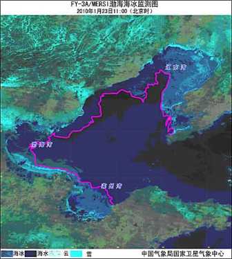 與2000年以來(lái)同期氣象衛(wèi)星監(jiān)測(cè)渤海海冰信息比較,今年1月23日渤海海冰范圍屬2000年以來(lái)的最大值,包括遼東灣、渤海灣、萊州灣海冰均為同期最大值。