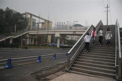 “天橋太陡,輪椅推不動(dòng),只有繞一個(gè)路口再過(guò)馬路。”在二環(huán)路郭家橋西街路口,市民張女士對(duì)眼前新建的天橋有些無(wú)奈。她說(shuō),推著坐輪椅的父親過(guò)街時(shí),每次遇到天橋都要繞道。